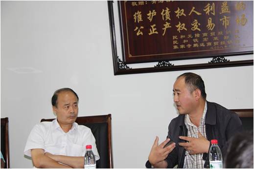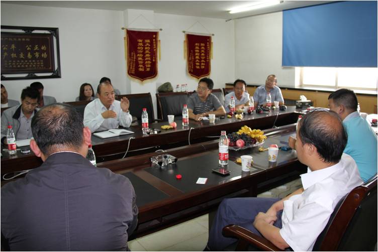 市场总经理商桂林首先向王学斯董事长一行介绍了我市场近两年的发展情况,重点介绍了我市场成功操作的西宁广场地下停车场招商项目及青海省印刷物资公司困难企业改制等案例,以及我市场针对进场项目的精根细作的专业化操作,并就近期国内各产权交易机构关心的地方央企业务进场和会员单位的建设发表了看法,王学斯董事长听完介绍后,充分肯定了我市场在对项目整体推广和策划方面的专业化操作手法及取得的成绩,对我市场针对项目操作依托的八大平台功能等理论研究表示感叹,表示要认真学习我市场在项目深度操作和会员单位管理等方面的成功操作手法。