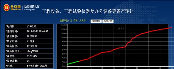 6月20日,青海路桥建设机械工程有限公司工程设备转让项目通过市场网络竞价最终比挂牌价67500元溢价44500元以112000元成交,实现增值率66%,创造了近期闲置资产处置增值率新高。