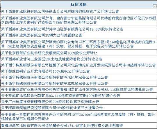 近两年来,青海省产权交易市场(下简称“我市场”)受青海盐湖集团、西部矿业集团、西宁特殊钢股份有限公司、青海春天药用资源科技股份有限公司(更名前为青海贤成矿业股份有限公司)、青海华鼎实业股份有限公司等多家企业委托转让股权、重大资产,我市场按照《中华人民共和国企业国有资产法》、《企业国有资产交易监督管理办法》(国务院国资委、财政部第32号令)、《青海省企业国有产权转让管理办法》、《中华人民共和国证券法》、《证券公司监督管理条例》等法律法规,将各企业股权、重大资产进行公开转让。
