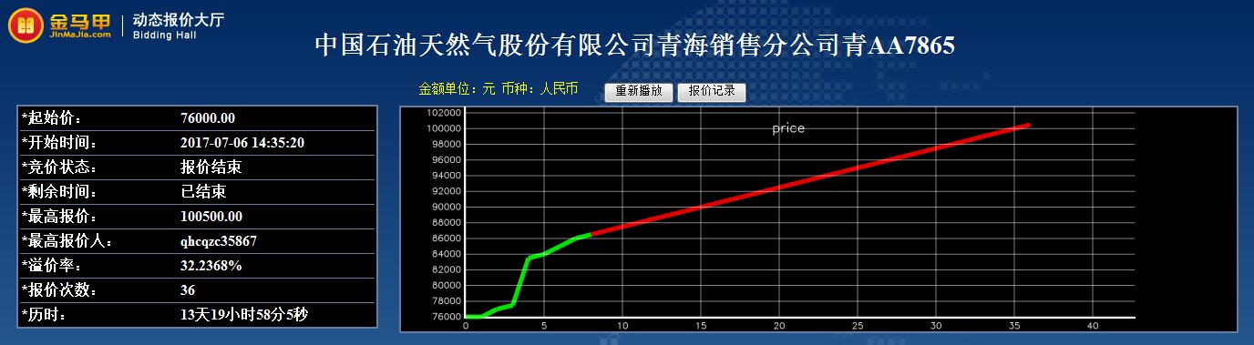 中国石油天然气股份有限公司青海销售分公司青AA7865 结果公示