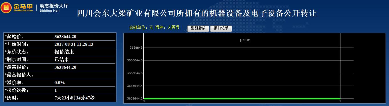 四川会东大梁矿业有限公司所拥有的机器设备及电子设备公开转让结果公示