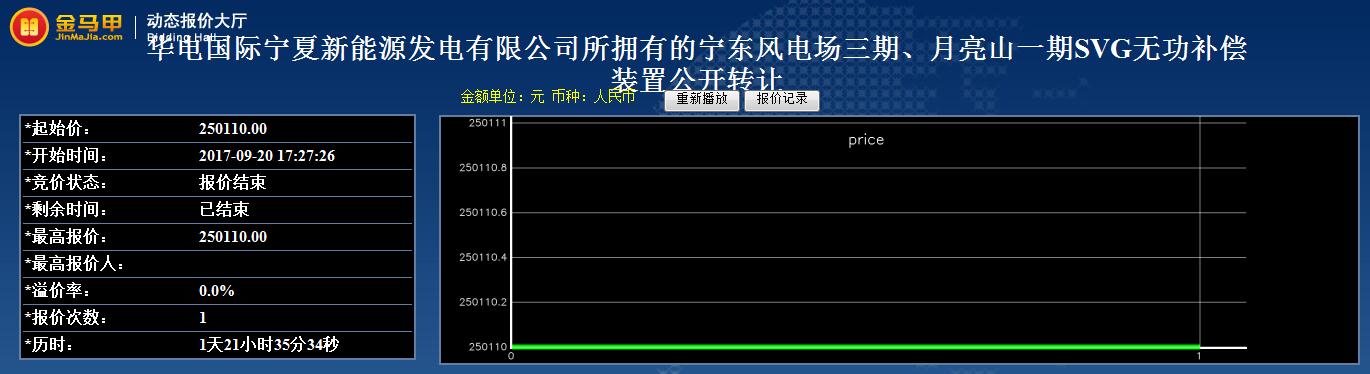 受华电国际宁夏新能源发电有限公司委托,青海省产权交易市场于2017年9月8日对其持有的宁东风电场三期、月亮山一起SVG无功补偿装置(项目编号GZ17QH030728  )实行公开网络竞价处置。