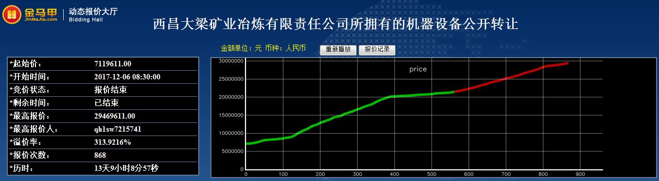 西昌大梁矿业冶炼有限责任公司所拥有的机器设备公开转让结果公示