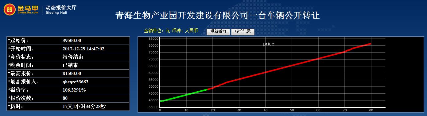 受青海生物产业园开发建设有限公司委托,青海省产权交易市场于2017年12月29日对其持有的车辆(项目编号GZ17QH051229)实行公开网络竞价处置。