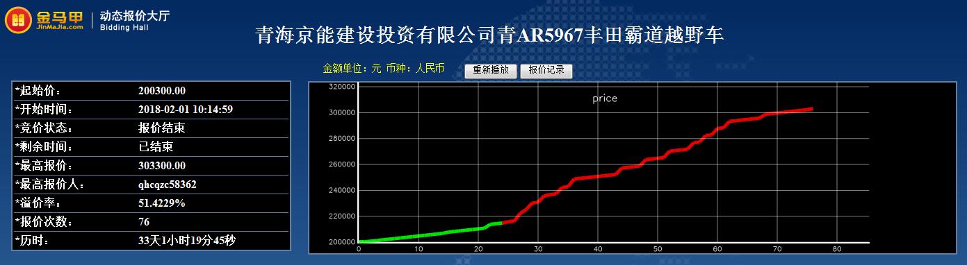 青海京能建设投资有限公司青AR5967丰田霸道越野车结果公示