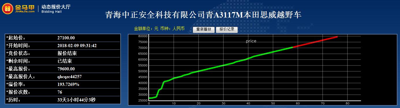 受青海中正安全科技有限公司委托,青海省产权交易市场于2018年2月9日对其持有的车辆青A3117M(项目编号GZ17QH050208)实行公开网络竞价处置。