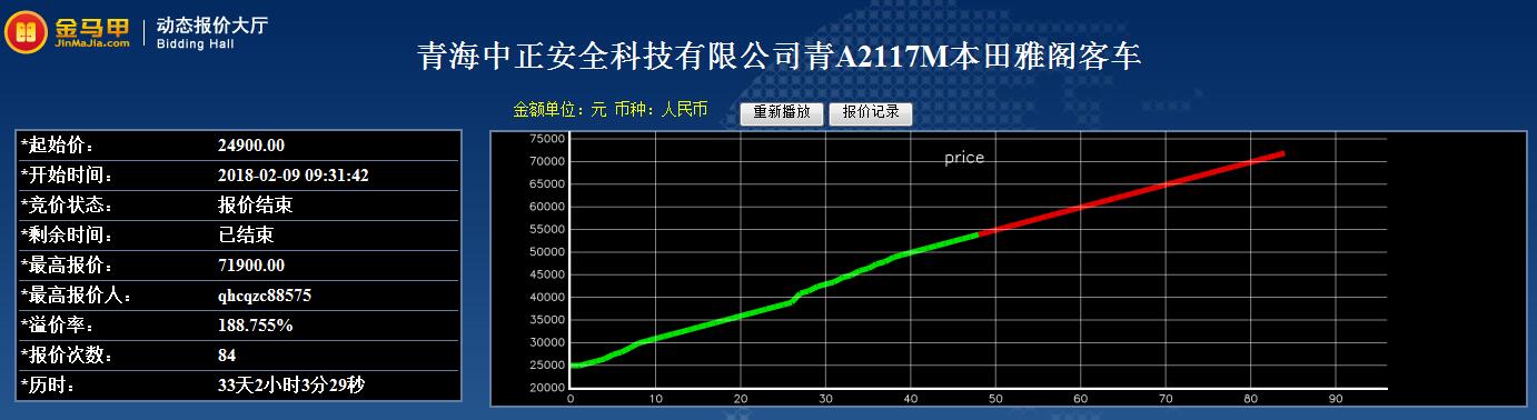 受青海中正安全科技有限公司委托,青海省产权交易市场于2018年2月9日对其持有的车辆青A2117M(项目编号GZ17QH050208)实行公开网络竞价处置。
