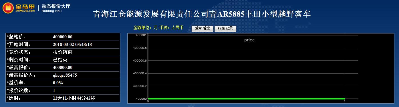 青海江仓能源发展有限责任公司青AR5885丰田小型越野客车结果公示