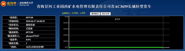 受青海甘河工业园西矿水电管理有限责任公司委托,青海省产权交易市场于2018年4月17日对其所有的青A3659长城轻型货车(项目编号GZ18QH030402)实行公开网络竞价处置。