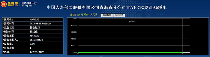 中国人寿保险股份有限公司青海省分公司青A10732奥迪A6轿车结果公示