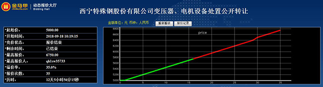 受西宁特殊钢股份有限公司的委托,对其所有的变压器、电机设备(项目编号GR2018QH1000123)实行公开网络竞价处置,挂牌价格为0.5万元/吨。