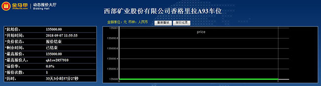 受西部矿业股份有限公司的委托,对其所有的香格里拉A93号车位(项目编号GR2018QH1000102)实行公开网络竞价处置,挂牌价格为13.5万元。