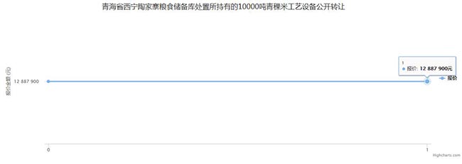 青海省西宁陶家寨粮食储备库的委托,对其所有的10000吨青稞米工艺设备(项目编号:QH12019DF100766)实行公开网络竞价处置,挂牌价格为1288.79万元。
