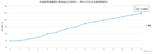 中国邮政储蓄银行青海省分行的委托,对其所有的标的六:青A2322D大众桑塔纳轿车(项目编号:QH12020DF100083)实行公开网络竞价处置,挂牌价格为3900.00元。