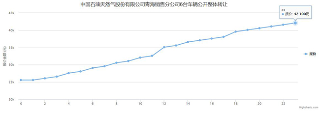 中国石油天然气股份有限公司青海销售分公司的委托,对其所拥有的6台车辆公开转让(项目编号:QH12021DF100546)实行公开网络竞价处置,挂牌价格为25600元。