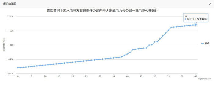 受青海黄河上游水电开发有限责任公司委托,对其所拥有的西宁太阳能电力分公司一批电缆公开转让 (项目编号:QH12021DF100927)实行公开网络竞价处置,挂牌价格为1020600元。
