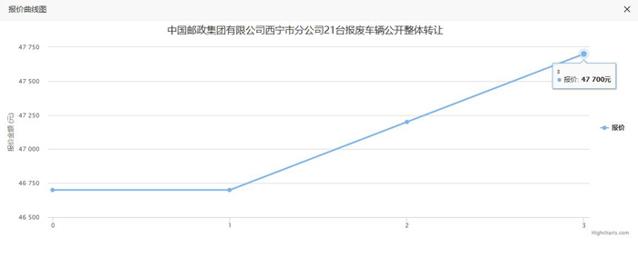 受中国邮政集团有限公司西宁市分公司委托,对其所拥有的21台报废车辆公开整体转让(项目编号:QH12022DF100006)实行公开网络竞价处置,挂牌价格为46700元。
