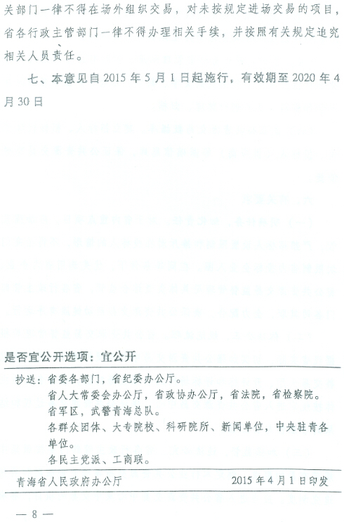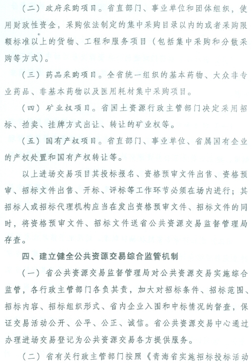 《关于青海省加强公共资源交易综合监管的实施意见》(青政办[2015]62号)