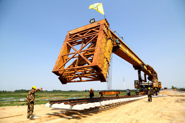 黄大铁路正线铺通现场