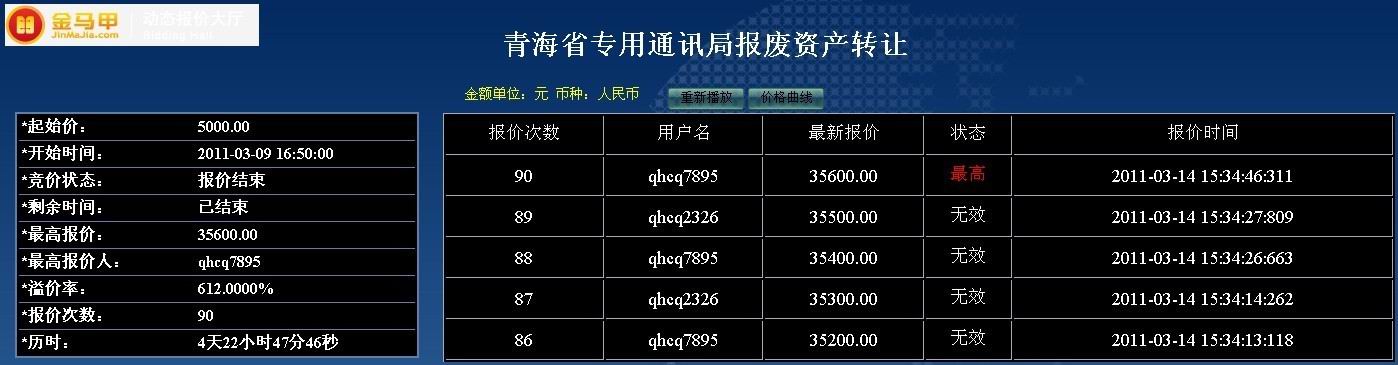 青海省专用通讯局报废资产转让项目网络竞价成功