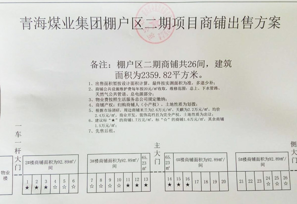 受能源发展集团有限公司委托,青海省产权交易市场对该公司所属大通能源新区26套商铺公开转让,单价1.5万㎡。