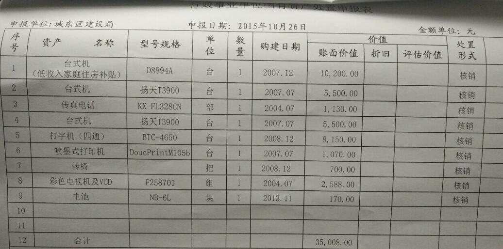 关于城东区财政局一批报废资产公开转让公告
