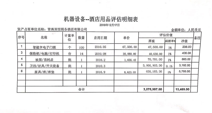 受青海宾馆商务酒店有限公司委托,依据《中华人民共和国企业国有资产法》、《企业国有资产交易监督管理办法》(国务院国资委、财政部第32号令)、《青海省企业国有产权转让管理办法》,青海省产权交易市场对青海宾馆商务酒店有限公司所拥有的一批资产公开转让,总挂牌价:10469.00元。