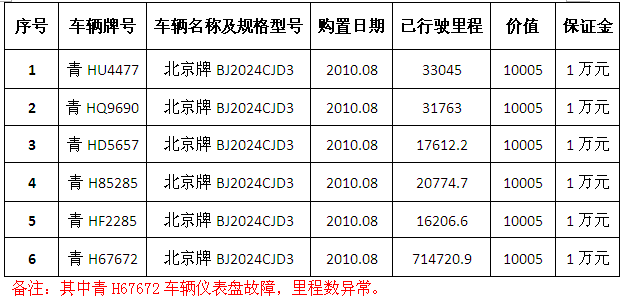 关于青海柴达木旅游开发投资有限公司六台车辆公开转让公告