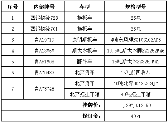 受西宁特殊钢股份有限公司委托,依据《中华人民共和国企业国有资产法》、《企业国有资产交易监督管理办法》(国务院国资委、财政部第32号令)、《青海省企业国有产权转让管理办法》,青海省产权交易市场对西宁特殊钢股份有限公司所拥有的14辆公车机械车公开转让,分两个标的竞价,挂牌总价:256.6万元。