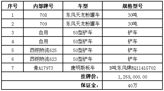 西宁特殊钢股份有限公司所拥有的14辆公车机械车 公开转让公告
