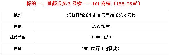 标的一位于景都乐苑3号楼101号商铺,建筑面积158.76平米,1/17层,临街商铺,套内面积150.32平米。