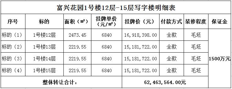 以上四个标的为一个受让标,需一次性付清成交总价。