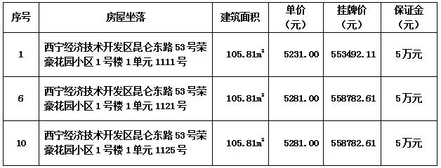受青海省创业发展孵化器有限公司委托,依据《中华人民共和国企业国有资产法》、《企业国有资产交易监督管理办法》(国务院国资委、财政部第32号令)、《青海省企业国有资产交易监督管理办法》(青国资产〔2017〕339号),青海省产权交易市场对青海省创业发展孵化器有限公司处置位于西宁市经济开发区昆仑东路53号荣豪花园小区1号楼3套房屋进行公开降价转让。