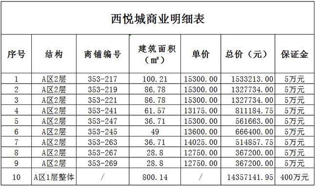 西宁市城北区柴达木路353号西悦城A区1、2层商铺公开转让公告