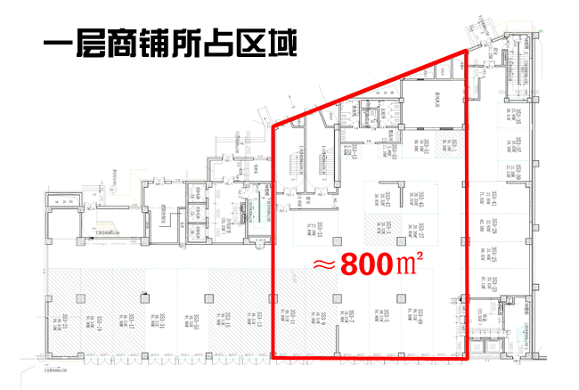 目前该商铺一层面积为800㎡可分割成12个独立产证。二层面积600㎡可分割6个独立产证,整体或分割对外出售共计1400㎡。