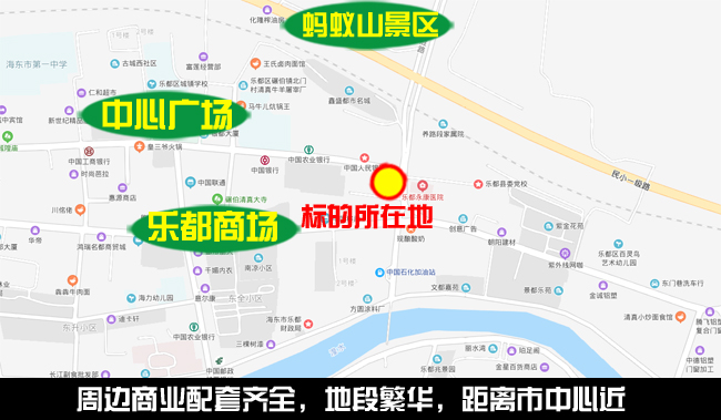 2、近邻中心广场,乐都商场、购物中心及蚂蚁山景区;