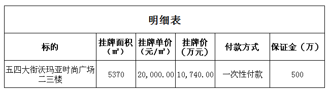 3.五四大街沃马亚时尚广场二、三楼整体打包公开对外转让