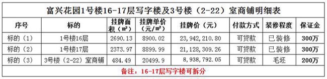 标的位于西宁市西川南路以南富兴路2号富兴花园小区,能源大厦写字楼16-17层(2层总面积5064.1㎡)独立单元的办公区域及3号楼(2-22)室商铺(面积484.49㎡),适合国有及民营中高端集团公司集中办公,分层管理。(具体面积详见明细表)