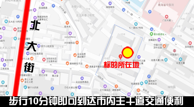 位于市内中心位置,紧临王府井、大十字百货超市、中心广场、中医院、第一医院及北玉井巷小学,地理位置极佳。