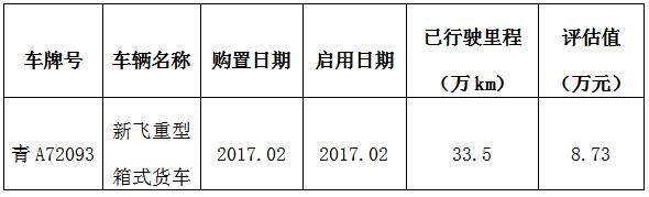 青海融鑫实业发展有限公司1台车辆公开转让公告