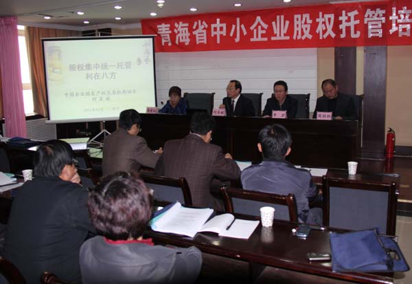 2012年11月8日,由青海省金融办主办、省产权交易市场协办的青海省中小企业股权托管培训班在西宁举办,培训班邀请国内中国企业国有产权机构协会副秘书长何亚斌教授及在股权托管走在全面前列的吉林产权交易所负责人进行授课,得到了我省中小企业的一致好评。此后一大批中小企业股权转让和融资项目陆续开展。