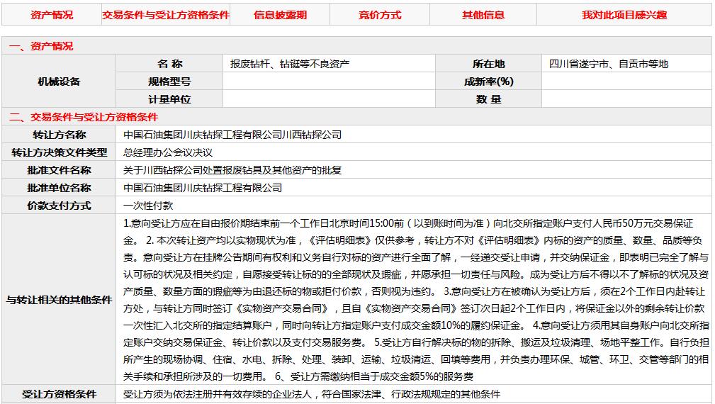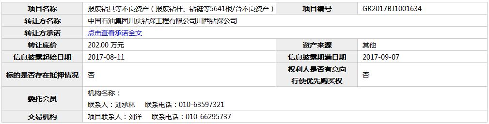 报废钻具等不良资产(报废钻杆、钻铤等5641根/台不良资产)