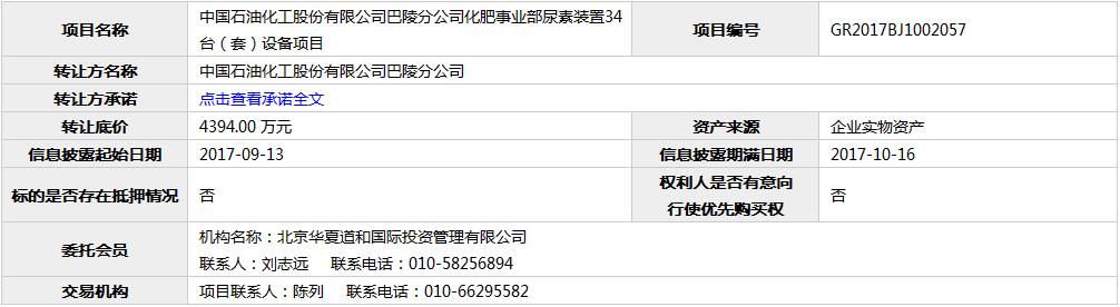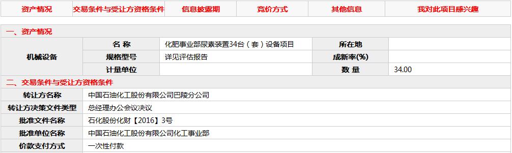 中国石油化工股份有限公司巴陵分公司化肥事业部尿素装置34台(套)设备项目