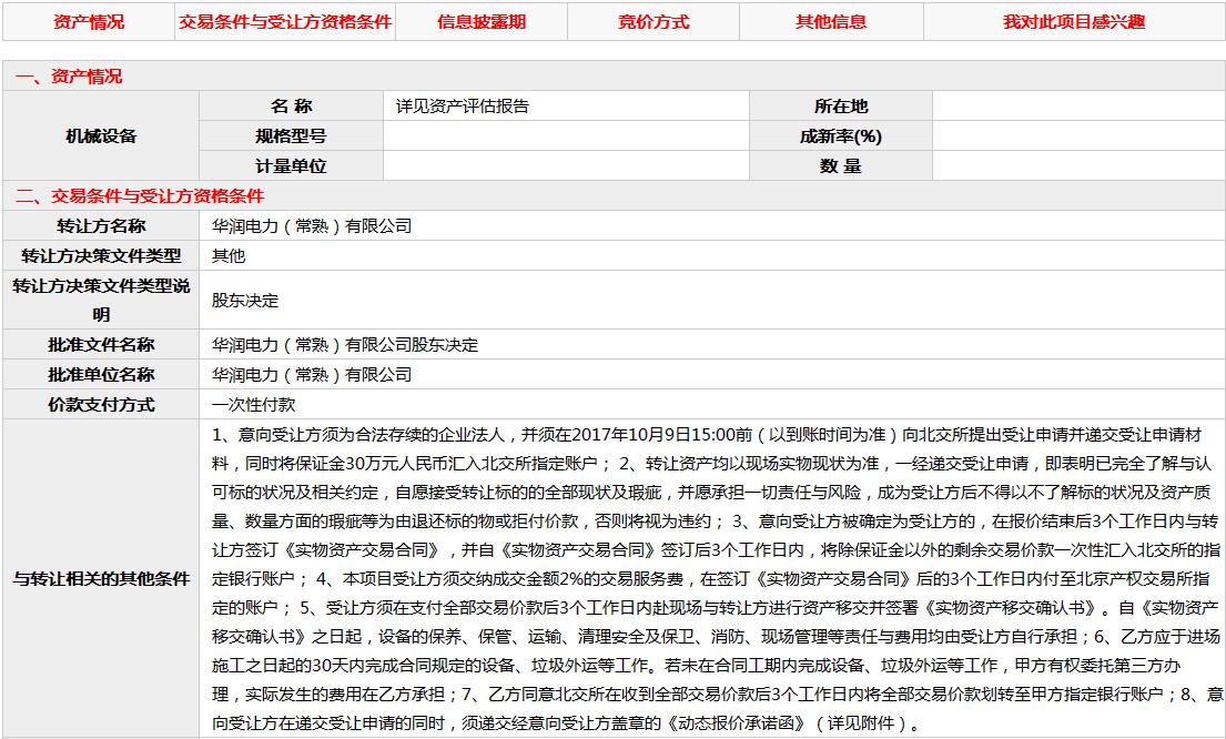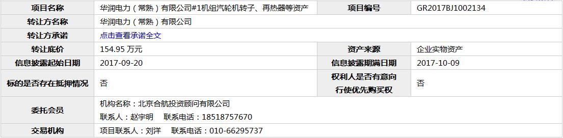 华润电力(常熟)有限公司#1机组汽轮机转子、再热器等资产