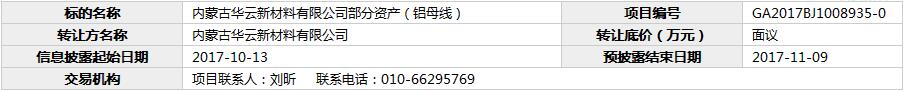 内蒙古华云新材料有限公司部分资产(铝母线)