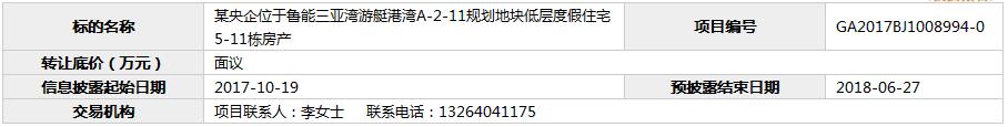 某央企位于鲁能三亚湾游艇港湾A-2-11规划地块低层度假住宅5-11栋房产