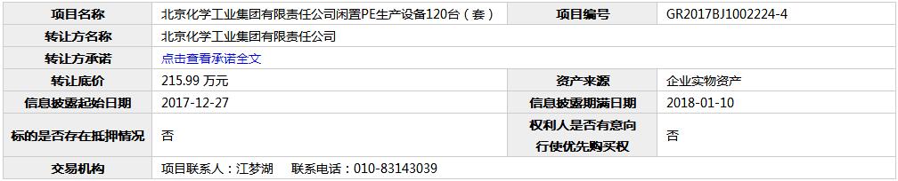 北京化学工业集团有限责任公司闲置PE生产设备120台(套)
