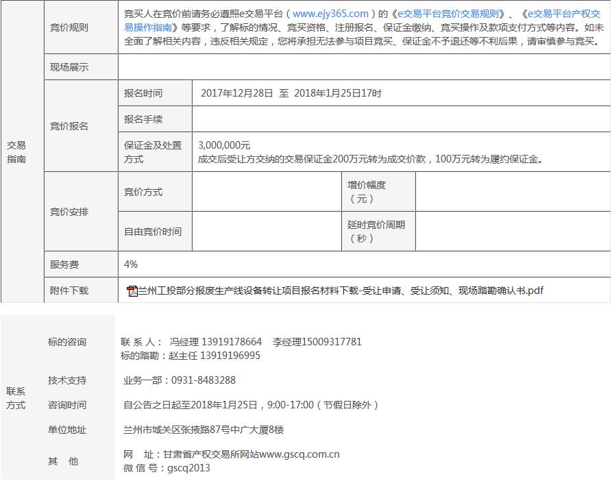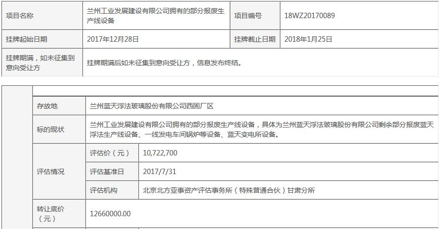 兰州工业发展建设有限公司拥有的部分报废生产线设备转让公告