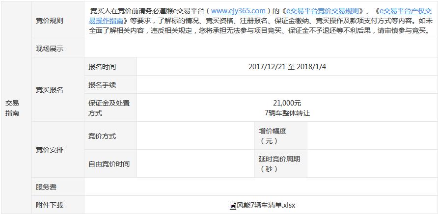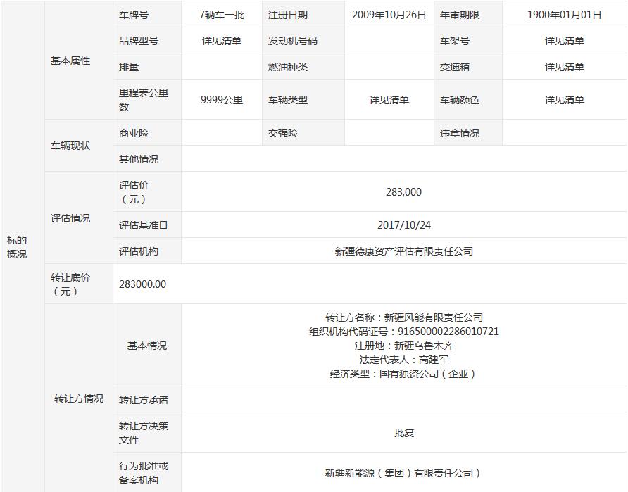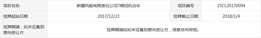 [新疆产权交易所]新疆风能有限责任公司7辆旧机动车交易公告