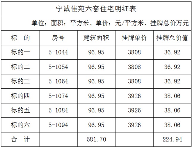 中国水利水电第四工程局有限公司所持西宁市城东区互助东路 25 号(宁诚佳苑) 六套住宅转让
